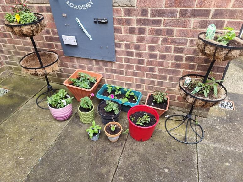 "Our new eco garden, we have made a start but still working on it! A huge thank you to all parents that have donated and that we will keep you all updated on how our plants/veg are doing and what we have spent our monetary donations on."