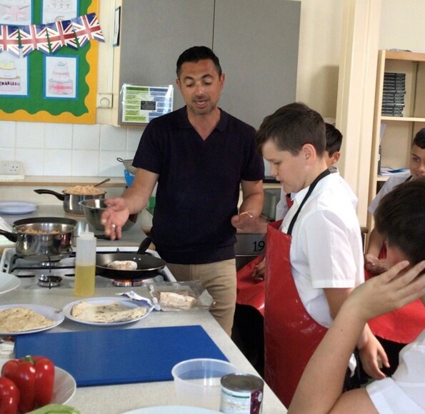 Theo is a natural when it comes to engaging our students, asking for volunteers and getting them involved in the preparation and the cooking. This year they each made their own flatbread which they then filled with a choice of freshly cooked spicy rice, Cajun spiced chicken and cod, pan fried halloumi, a homemade guacamole salsa and some shredded lettuce.