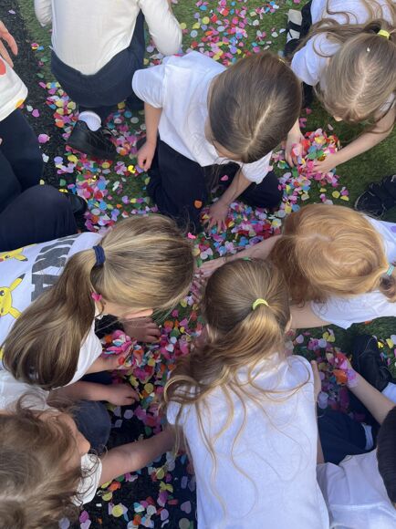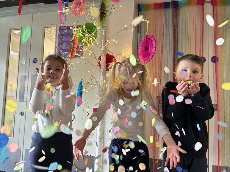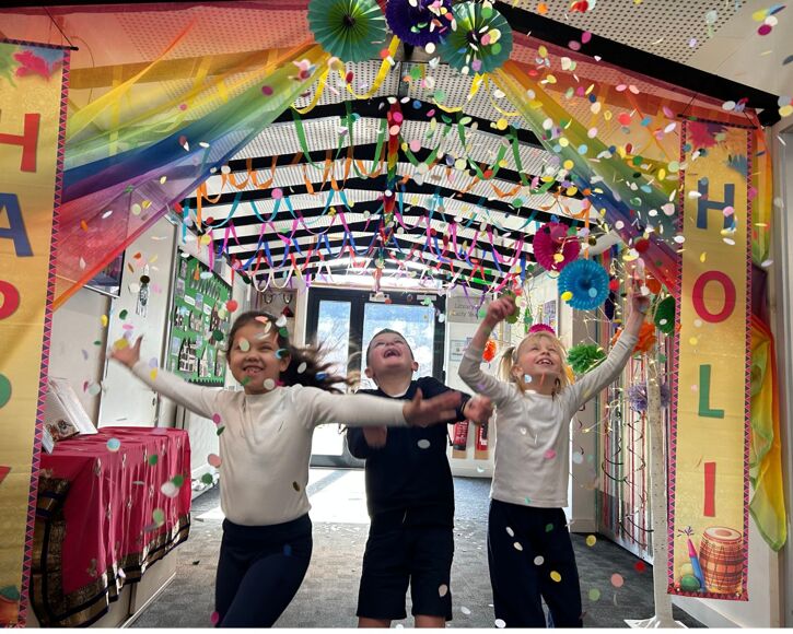 The festival foyer was kindly decorated by the Boohdna family, and staff to mark the festival of Holi. The children have had huge fun marking the festival with coloured bio-degradable confetti. Traditionally coloured paint is thrown, not coloured confetti.