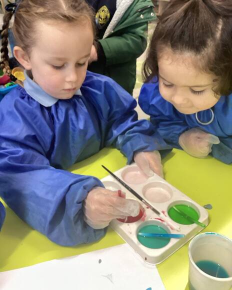 With the help of an adult, the children carefully opened up broken felt-tip pens, squeezed out the ink and watched in amazement as the water absorbed the colours! After exploring the magic of ink and water, our little eco-heroes put their discoveries to good use! Using the watered-down ink from recycled felt-tip pens, they experimented with different techniques to create stunning planet pictures!