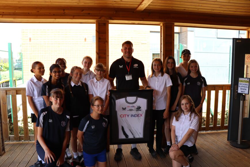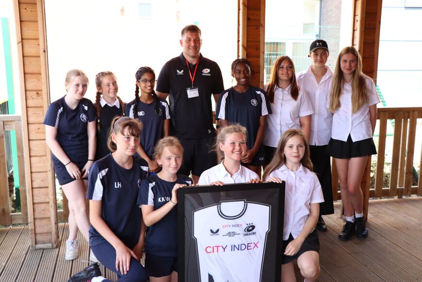 Posted on 09/07/2025Last Friday, former Longdean School student and current Saracens Rugby player James Isaacs paid a special visit to his old school, bringing with him his debut Saracens shirt as a proud memento. During his visit, he took time to meet with aspiring young players, sharing stories from his journey to the professional ranks. He credited the school’s PE department with playing a key role in his development, and encouraged students to pursue their goals with determination and passion.