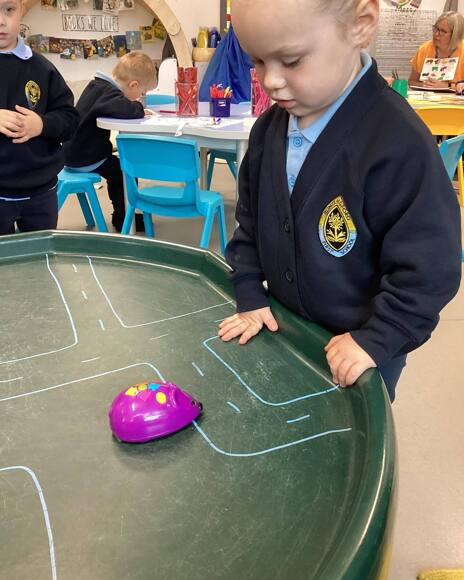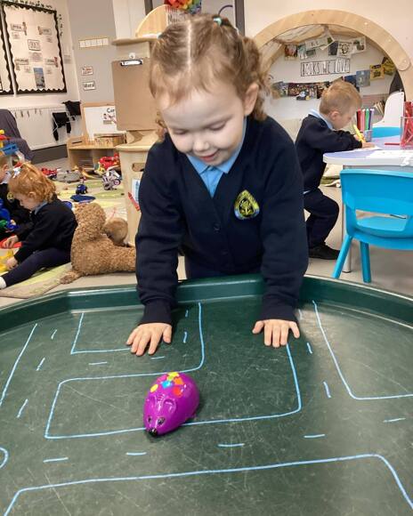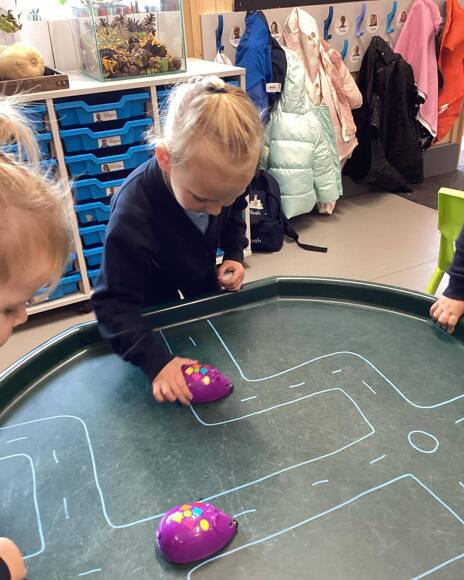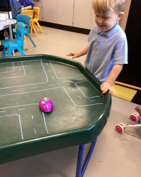 Our newest tiny humans have settled in brilliantly and have already been busy exploring early coding skills with our BeeBot mice, as part of national coding week. Through play, they’ve been learning to use directional vocabulary—forward, backwards, left and right—and beginning to understand cause and effect: things happen when we press buttons!