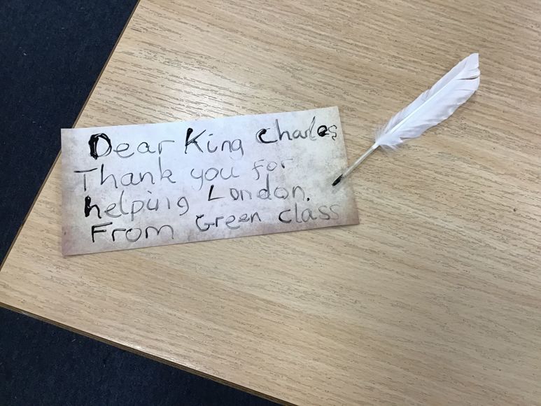 We then wrote a letter using a quill to King Charles II to thank him for leading the people to stop the fire.