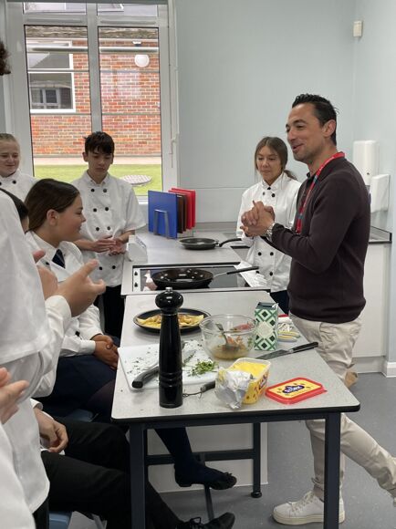 Sir John Lawes School welcomed Theo Michaels to officially opened the refurbished food room. Theo is a chef, presenter and award winning author. Theo is a resident chef on Channel 4’s Steph’s Packed Lunch and frequently in the press and media and food festivals (Taste London, Carfest, etc.).